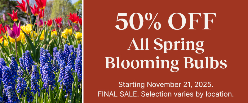 50% OFF All Spring Blooming Bulbs and Garlic while supplies last. Starting November 21, 2025. FINAL SALE. Selection varies by location.