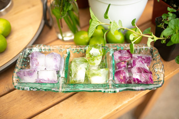 Don’t overlook the power of adding a garnish to a drink to increase the enjoyment. We eat and drink with our eyes almost as much as our taste buds. Imagine borage flowers floating in a drink, or level up and freeze some in ice cubes. The blue star-shaped flowers float delicately and literally all you’ve done is drop them in, viola instantly a snazzy drink.