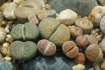 Cute and unusual. They look like a little stone with a cleft right down the middle. Or perhaps a better description is like an animal hoof, I’ve even heard them described as looking like a stone “backside” if you know what I mean. When they flower the stem comes out of the cleft in the most unexpected and amusing way. And soon you have a cheerful white or yellow aster like flower that you never expected.