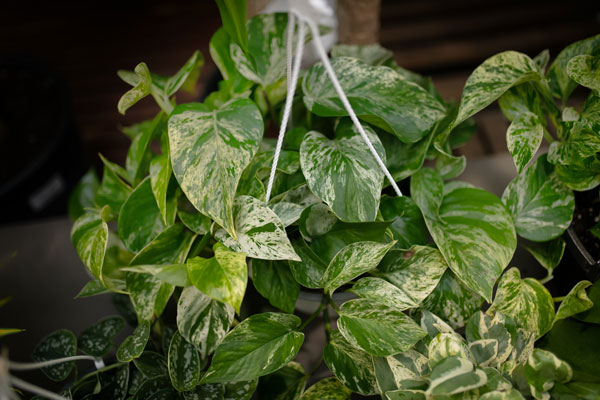 3. Pothos are vigorous vine with heart shaped leaves that is very low maintenance and can handle both low and high light conditions. Some are variegated with green and white or yellow, others are a bright shiny green, there is even one (satin pothos) with a velvety silver leaf, and my favourite the neon pothos with golden/chartreuse colour. Don’t be afraid to cut back any vines that get too long, it will make your plant bushier and fuller looking.