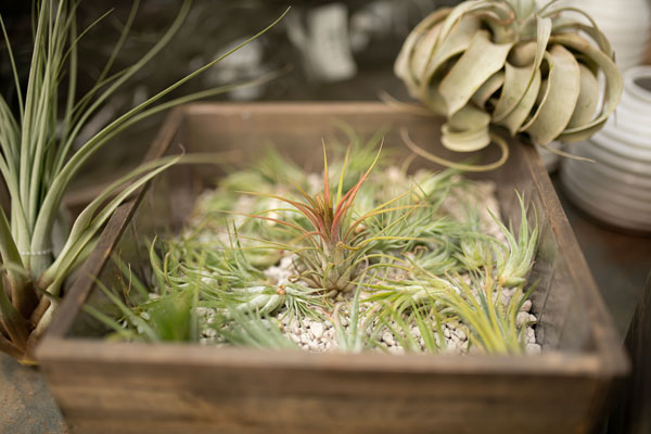 1. Tillandsia, or air plants as they are commonly called, don’t need much light and require no soil. In nature they grow high up in the canopy of trees. This means they can handle shade and are not too fussy. To water, just let them soak for an hour or two in a bowl every week or so. You can get really creative with them, sick them in a shell or piece of driftwood, a favourite cup, or even just wire one to your desk lamp. For the happiest air plants, take a break from the computer and mist them regularly.