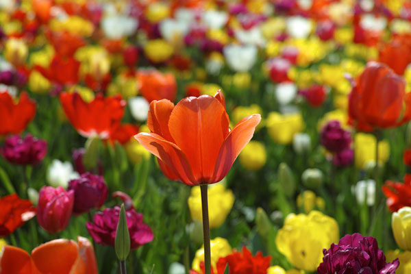 ‘Ballerina’ is a late blooming, elegant shaped lily-flowered tulip with vibrant orange petals and sweet scent.