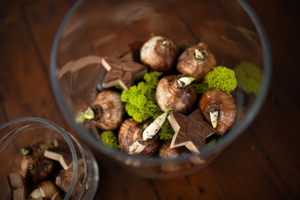 If you ever grown hyacinths in your garden then you know the wonderful fragrance, growing them indoors lets you enjoy it on a whole new level. Like paperwhites prepared hyacinths can be grown in either soil or water, and there are even special bulb vases designed for them (check out in store to find one). The same rules apply to these bulbs as to amaryllis and paperwhites, so be careful with choosing your container and water them accordingly.