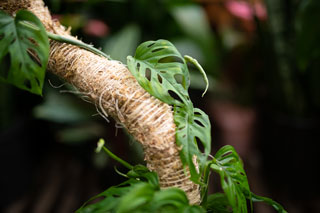 As the plant grows you lead the plant around the pole using ties to keep them in place If the plant that is being grown, has aerial roots that seek a substrate to hold onto, they can embed themselves in the soft sphagnum moss padding as they climb. Useful and beautifully decorative!