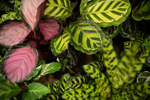 5. Calathea and maranta (prayer plants) are what to look for if you want colour and drama but don’t have a lot of light. They boast bright pink to dark velvety leaves and many are festooned with stunning geometric patterns that needs to be seen to be believed.