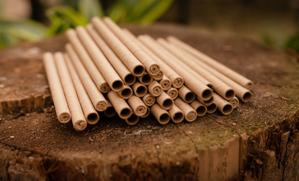 One way to create a nest for mason bees is to place a bunch/group of paper tubes in a tin can attached to a suitable surface in a covered place.