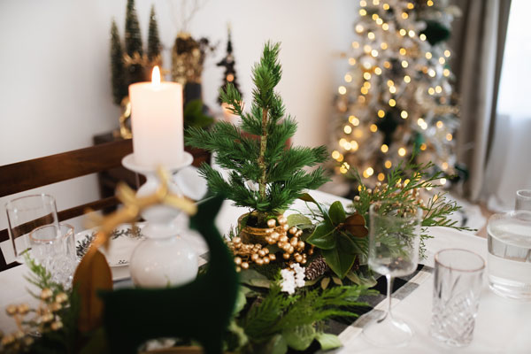No Christmas tablescape is complete without the lush greenery that is synonymous with the season. Evergreens, like pine, fir, and spruce, add both visual interest and a fragrant touch to your table. Use them to create a garland that runs the length of your table, drape them across the center, or scatter individual sprigs on the place settings.
