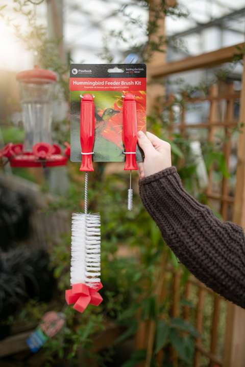 - A bottle brush or specialized feeder brush is helpful to clean all the small nooks and crannies