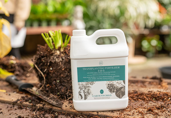Plant at the same depth as before. Water thoroughly and apply GARDENWORKS Transplanting Fertilizer 5-15-5.
